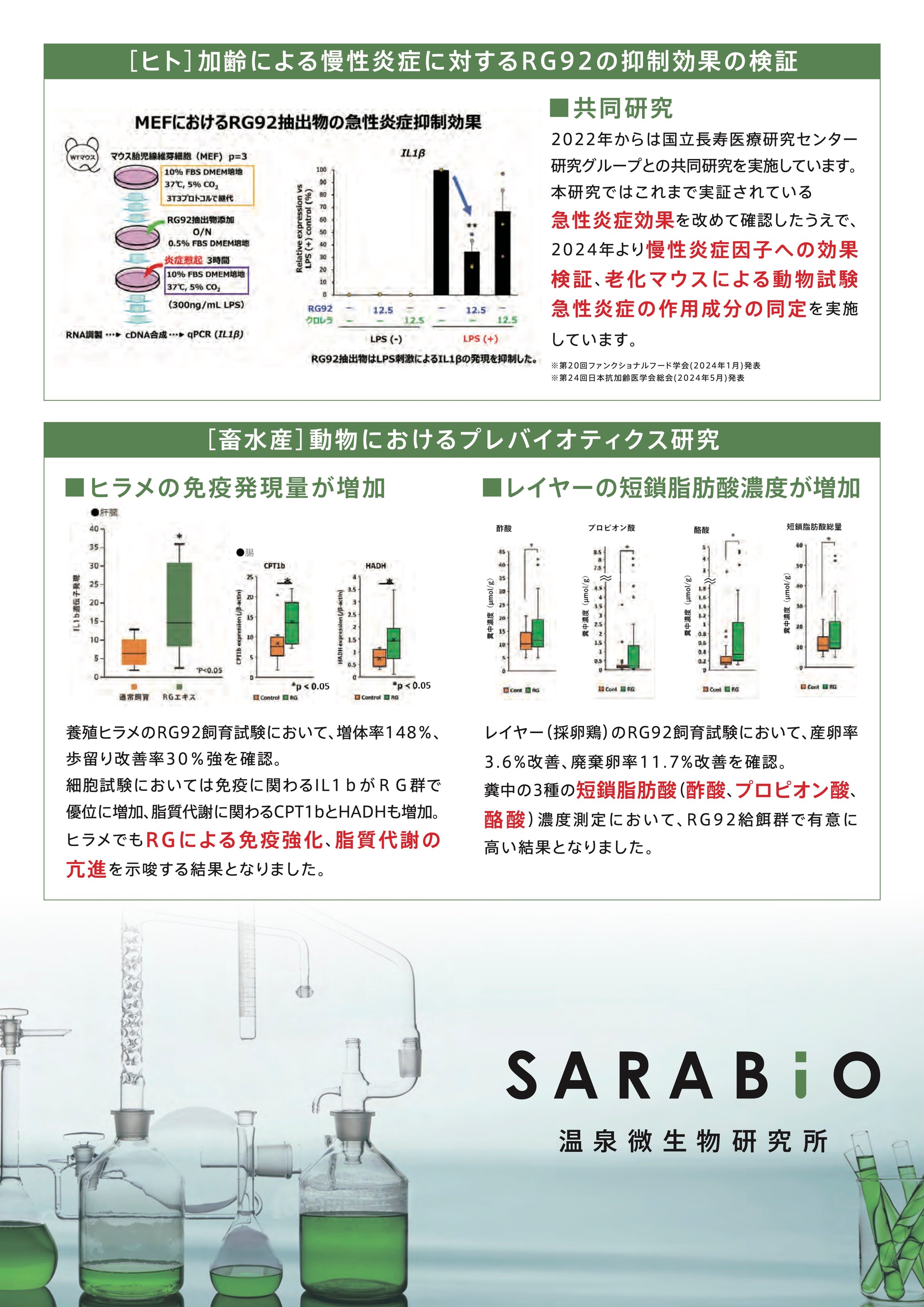 RG92は、高温(約90℃)でも生息可能な極限環境微生物由来の成分で、抗炎症・抗酸化・抗糖化作用などが研究で示唆されています。